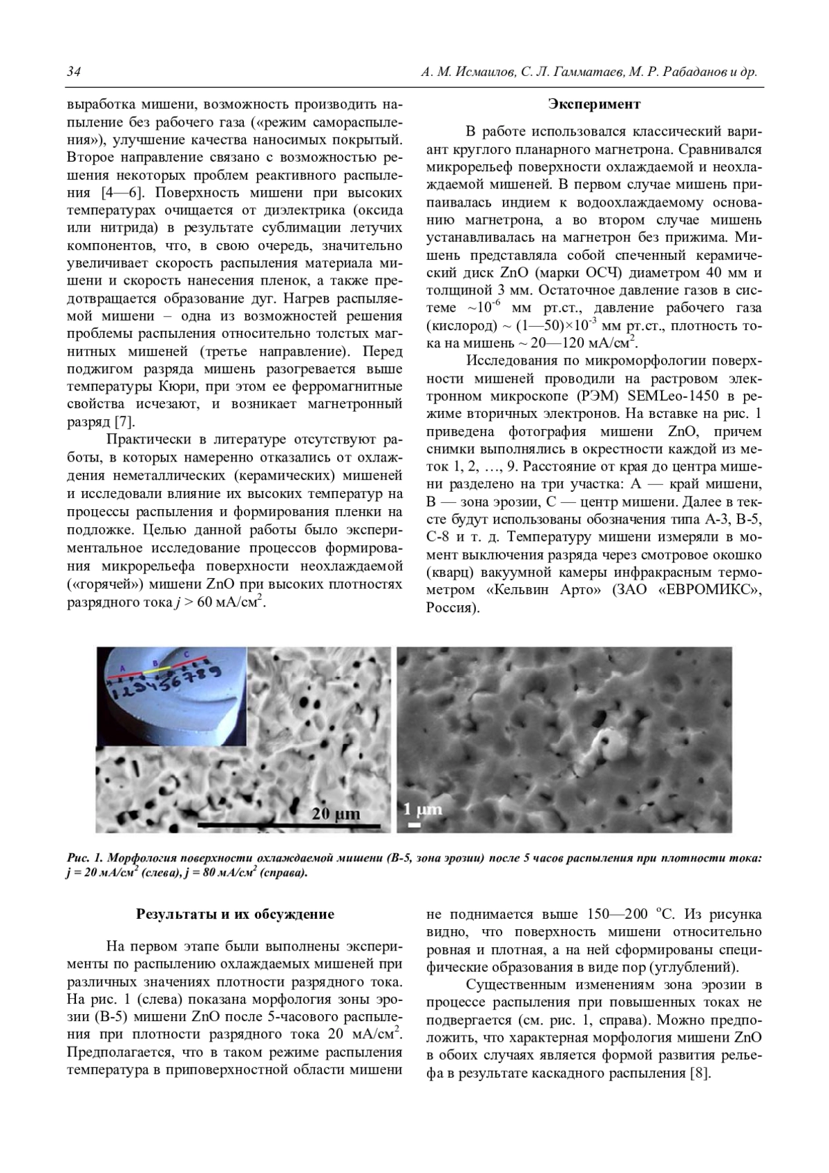 A. M. Ismailov, S. L. Gammataev, M. R. Rabadanov, I. Sh. Aliev, and L. L. Emiraslanova Formation of crystal structures on a surface of the “hot” ZnO target at magnetron sputtering 33