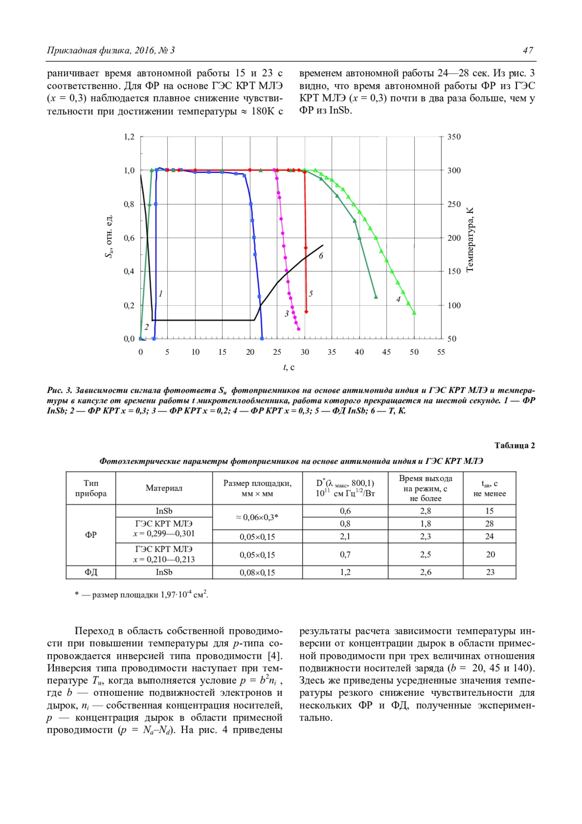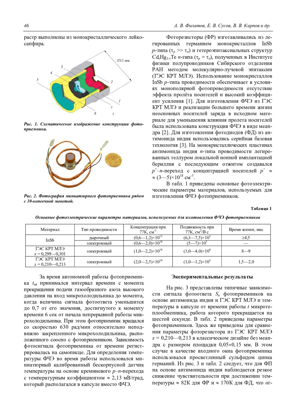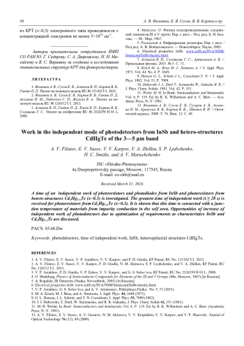 Филатов А. В., Сусов Е. В., Карпов В. В., Жилкин В. А., Любченко С. П., Кузнецов Н. С., Марущенко А. В. Время автономной работы фотоприемников диапазона спектра 3—5 мкм из InSb и гетероэпитаксиальных структур CdHgTe 45