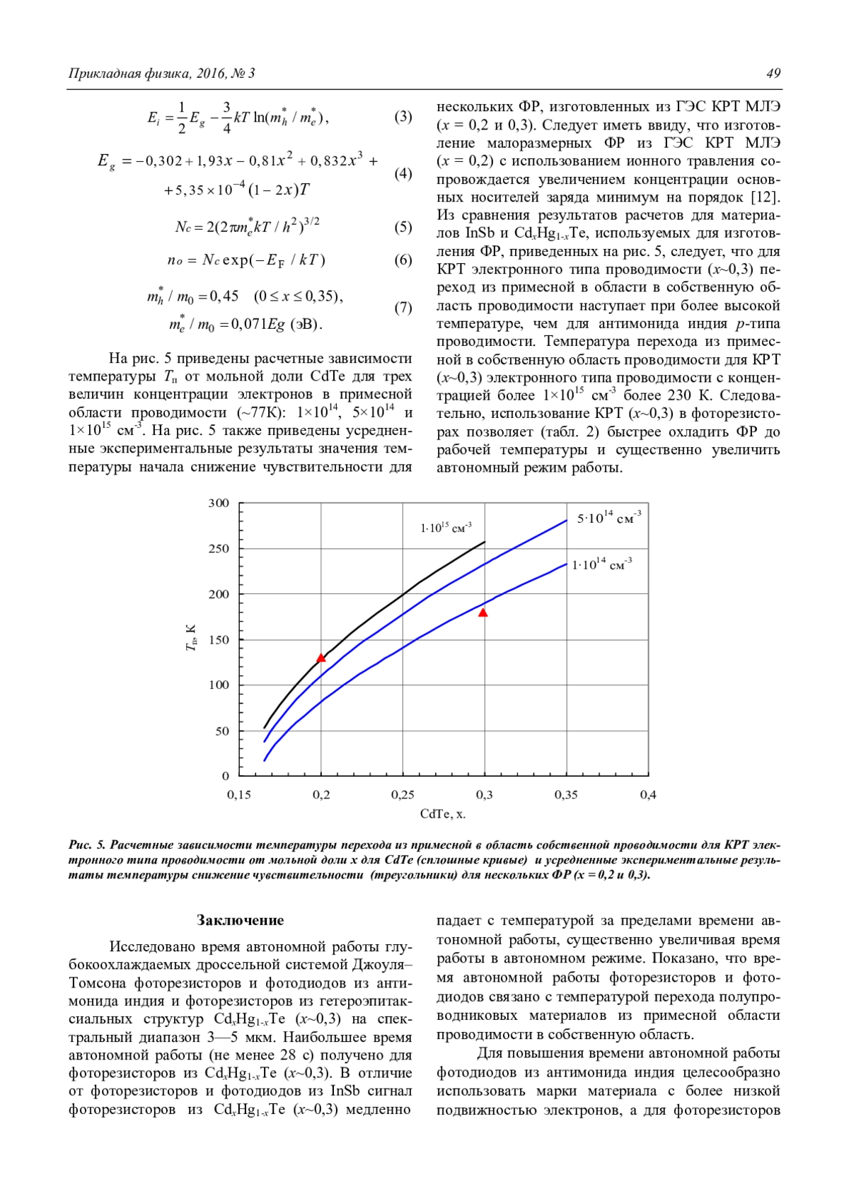 Для повышения времени автономной работы фотодиодов из антимонида индия целесообразно использовать марки материала с более низкой подвижностью электронов, а для фоторезисторов из КРТ (х~0,3) электронного типа проводимости с концентрацией электронов не менее 5×1014 см-3.