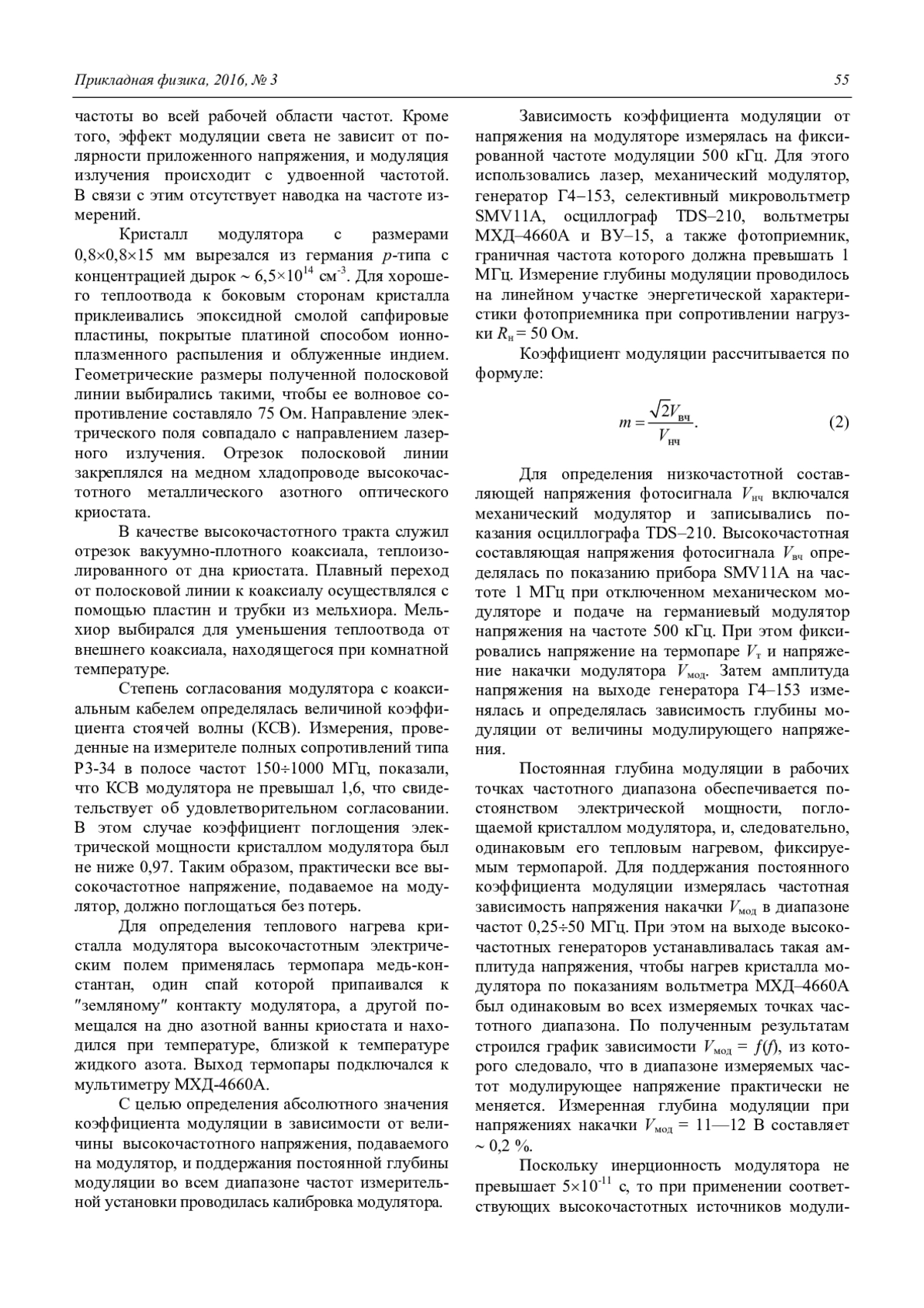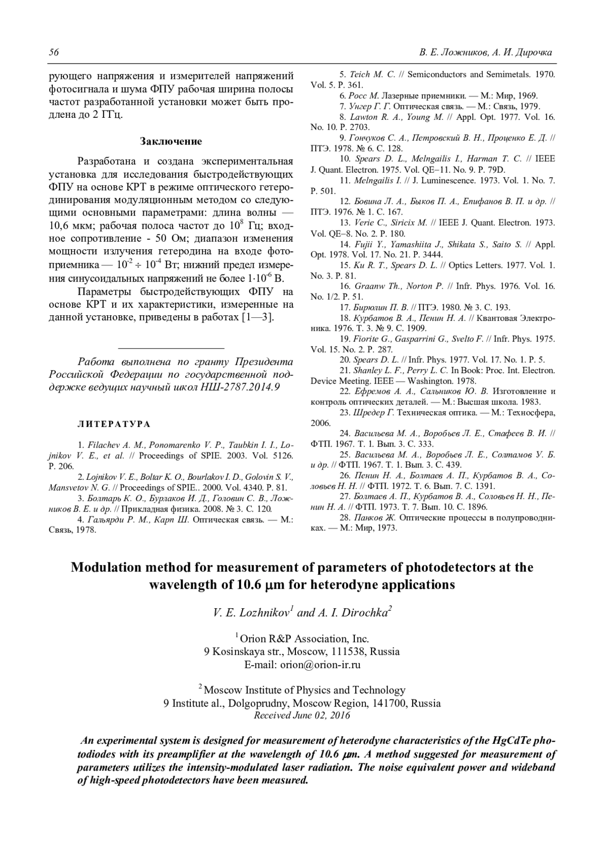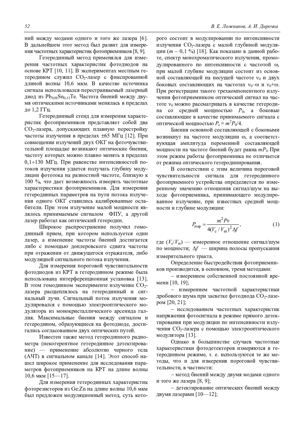 Ложников В. Е., Дирочка А. И. Модуляционный метод измерения параметров фотоприемного устройства на длину волны 10,6 мкм в гетеродинном режиме 51