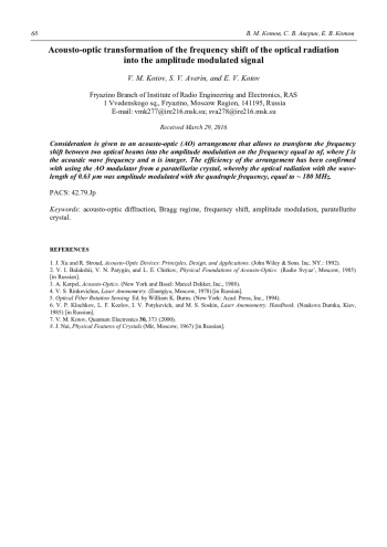 V. M. Kotov, S. V. Averin, and E. V. Kotov Acoustooptic transformation of the frequency shift of the optical radiation into the amplitude modulated signal 65