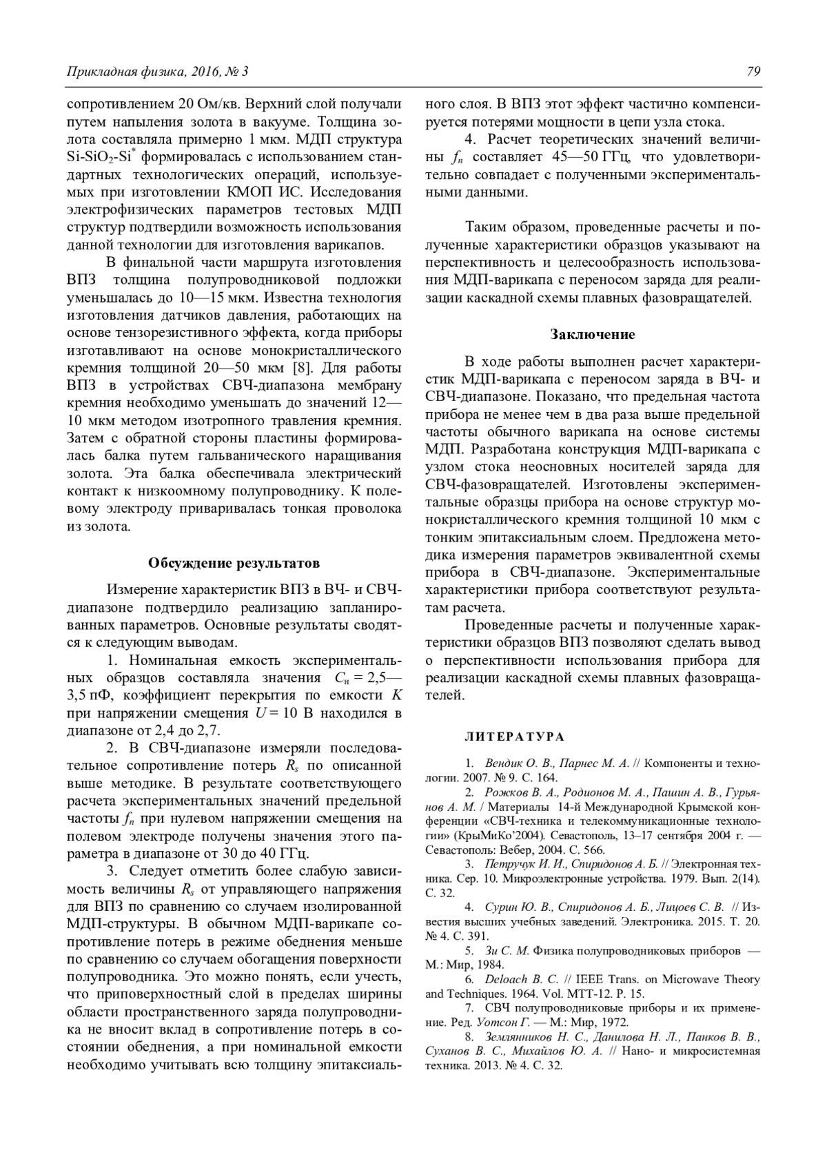 Спиридонов А. Б., Лицоев С. В., Петручук И. И. Разработка МДП-варикапа с переносом заряда в СВЧ-диапазоне 75