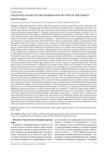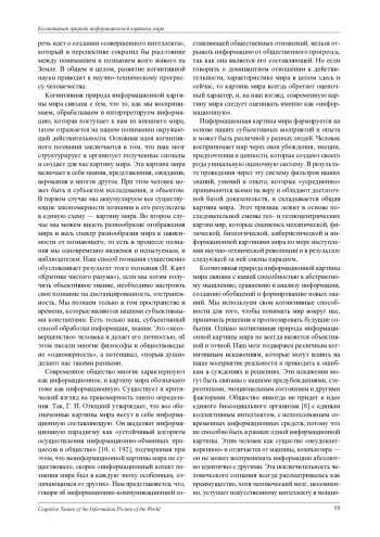 Осмысление картины мира всегда актуально, ведь сколько бы мы ни изучали мир, он всегда «другой», меняется под воздействием внешних и внутренних сил. Обращаясь к словам А. Данилова о теоретических работах по изучению картины мира, можно отметить, что все процессы современности нуждаются в философском осмыслении «вчерашнего, сегодняшнего и завтрашнего для всей человеческой цивилизации» [1, с. 5]. Во введении автор обращается к теоретическим основаниям формирования картины мира вследствие прогресса человечества и вслед за многими авторами подчеркивает, что не было в истории человечества постепенной смены одной картины мира на другую - скорее следующая накладывались на предыдущую, поэтому в своей персональной картине мира мы имеем следы и мифологического, и религиозного, и рационального, и научного познания мира. Картина мира человека может формироваться от самой простой обывательской схемы, взгляда, отношения ко всему, что происходит вокруг, до самой сложной научной гипотезы о том, что на формирование картины мира современного человека влияют и техногенные факторы, и научно-техническая революция, и глобальные изменения ноосферы в перспективе. Складывая весь опыт познания мира человеком, мы получаем единую картину. Познание в общем, коллективном смысле представляет собой картины мира, основанные на общих, признаваемых всеми членами общества парадигмах, на которых строится понимание и принятие окружающего мира. Автор сконцентрировал свое внимание на когнитивных началах построения мира человеком, его осмыслении через сигналы мозга, через символы, в которые он эти сигналы преобразует, через язык, в котором отражается мир. При этом человек может выступать и как объект изучения, и как активный субъект, изучающий процессы освоения мира человеком через когнитивные инструменты. От понятия когнитивной картины мира автор переходит к содержательной составляющей когнитивной природы мира, обращаясь к особенностям современной информационной картины мира и отражению в ней новых образов. Рассматривая результаты когнитивного познания мира, такие как моделирование мира мозгом и искусственным интеллектом, автор поднимает вопрос об этике использования искусственного интеллекта. Современное общество - это информационное общество, в котором многие процессы связаны с хранением, переработкой и передачей информации. Жизнедеятельность общества зависит от нормального функционирования информационных процессов и подчинена им. Автор пытается осмыслить и тот факт, что сегодня не только техника лежит в основе прогресса, но и пришло время искусственного интеллекта, который в данный момент воспринимается обществом как некая игра, приспособление, но в перспективе может вытеснить человека и его осознанное поведение из многих сфер деятельности. Резонно поднимается вопрос о том, сможет ли в перспективе человек отстоять свое первенство в интеллектуальном познании мира или эта прерогатива останется за машинными процессами? Автор приходит к мысли, что несмотря на достижения современной науки, особенно в области создания искусственного интеллекта, за человеком и обществом в целом остается право быть «несовершенными», иметь «право на ошибку», которое в конечном счете и делает общество таким многомерным и поликультурным. Отсюда такая бог