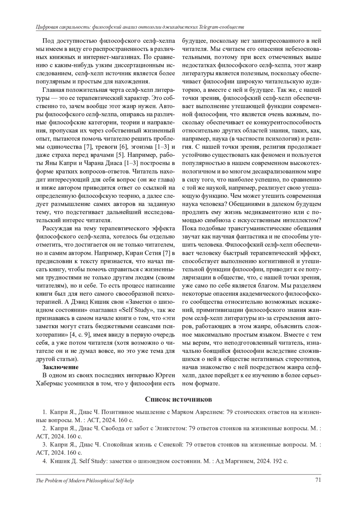 7. Сетия К. Жизнь жестче. Как философия помогает не отчаиваться в трудные времена. М.: Individuum, 2024. 256 с.