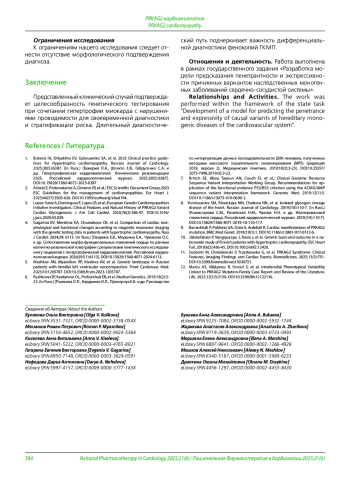 4. Гагарина Е.В., Мершина Е.А., Чумакова О.С. и др. Сопоставление морфо-функциональных изменений сердца по данным магнитно-резонансной томографии с результатами генетического исследования у пациентов с гипертрофической кардиомиопатией. Российский кардиологический журнал. 2024;29(11):6113. DOI: 10.15829/1560-4071-2024-6113