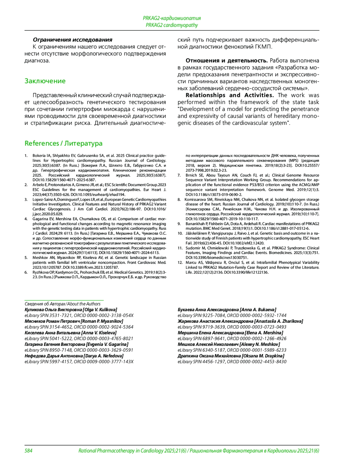 5. Meshkov AN, Myasnikov RP, Kiseleva AV, et al. Genetic landscape in Russian patients with familial left ventricular noncompaction. Front Cardiovasc Med. 2023;10:1205787. DOI: 10.3389/fcvm.2023.1205787