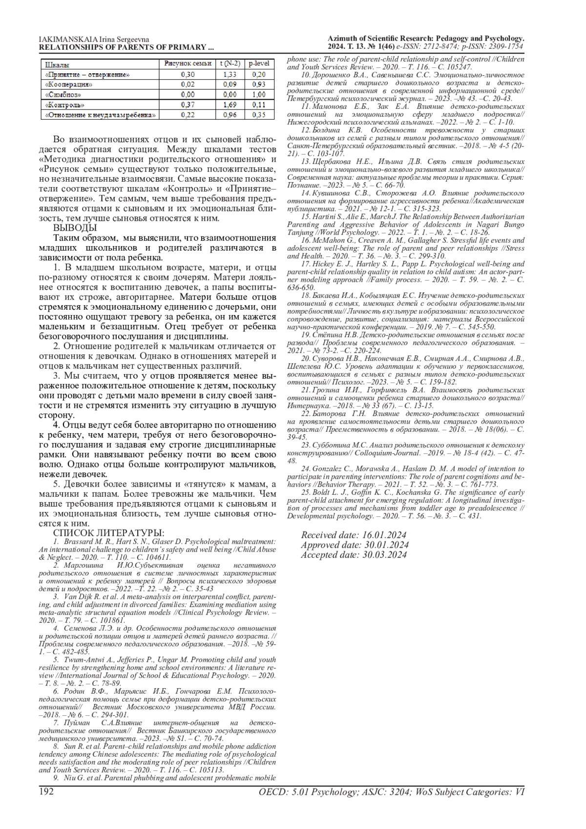 13. Щербакова Н.Е., Ильина Д.В. Связь стиля родительских отношений и эмоционально-волевого развития младшего школьника// Современная наука: актуальные проблемы теории и практики. Серия: Познание. -2023. - № 5. - С. 66-70. EDN: BUAJHP