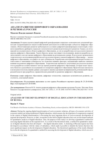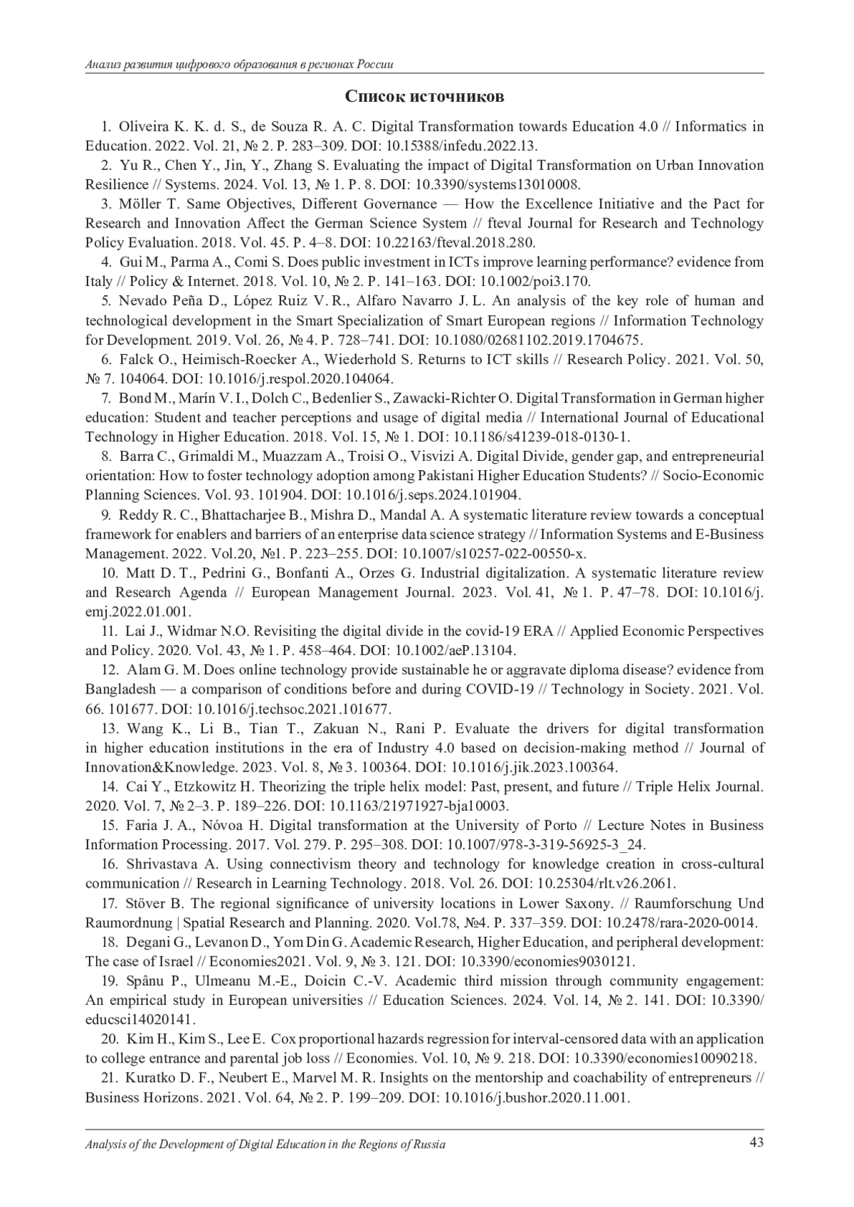 2. Yu R., Chen Y., Jin, Y., Zhang S. Evaluating the impact of Digital Transformation on Urban Innovation Resilience // Systems. 2024. Vol. 13, № 1. P. 8. DOI: 10.3390/systems13010008