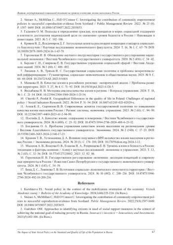 8. Манаева И. В. Качество жизни в российских регионах: эмпирический анализ // Проблемы развития территории. 2023. Т. 27, № 4. С. 71-92. DOI: 10.15838/ptd.2023.4.126.5 EDN: PPQPJV