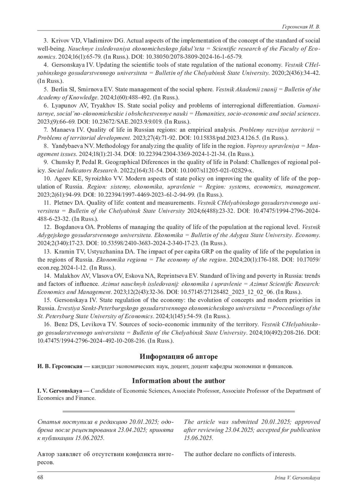9. Яндыбаева Н. В. Методика анализа качества жизни в регионе // Вопросы управления. 2024. Т. 18, № 1. С. 21-34. DOI: 10.22394/2304-3369-2024-1-21-34 EDN: DDCLIB