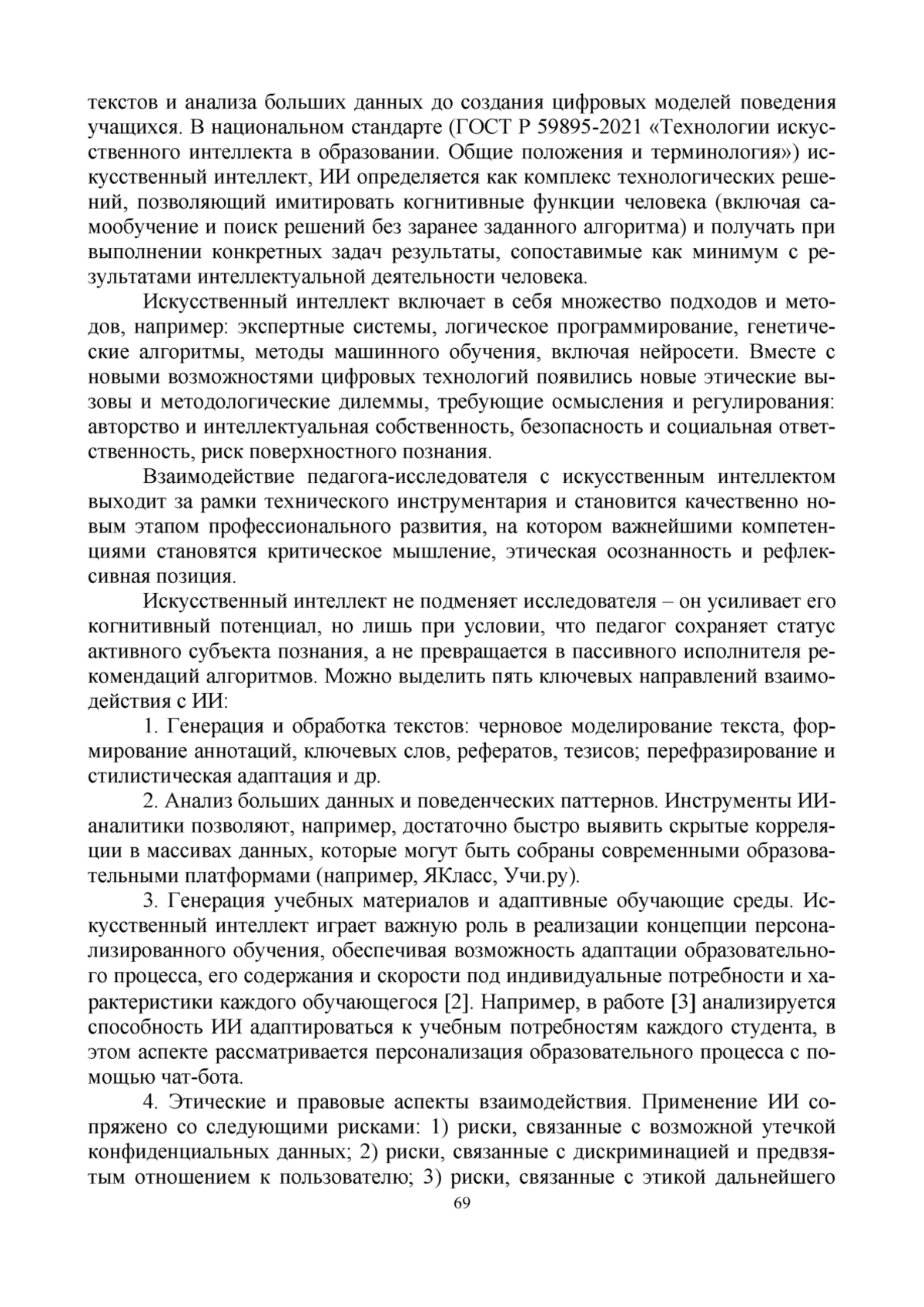 4. Филимонова И. В. Этическая сторона использования искусственного интеллекта в образовании // Вестник Евразийской науки. 2024. Т. 16, № S1. URL: https://esj.today/PDF/64FAVN124.pdf (дата обращения: 29.08.2025). EDN: BKKVXO