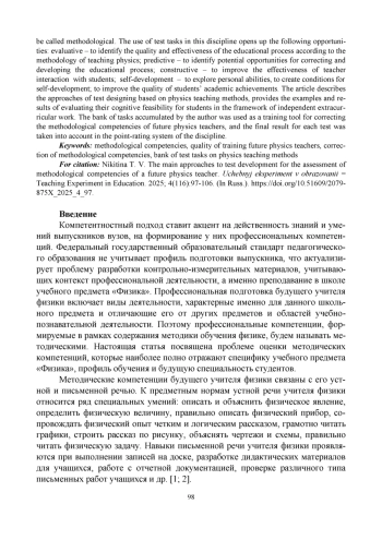 5. Никитина Т. В. Тестовая форма диагностики и корректировки методических компетенций будущего учителя физики // Гуманитарный научный вестник. 2023. № 12. С. 19-25. EDN: GEXEUJ
