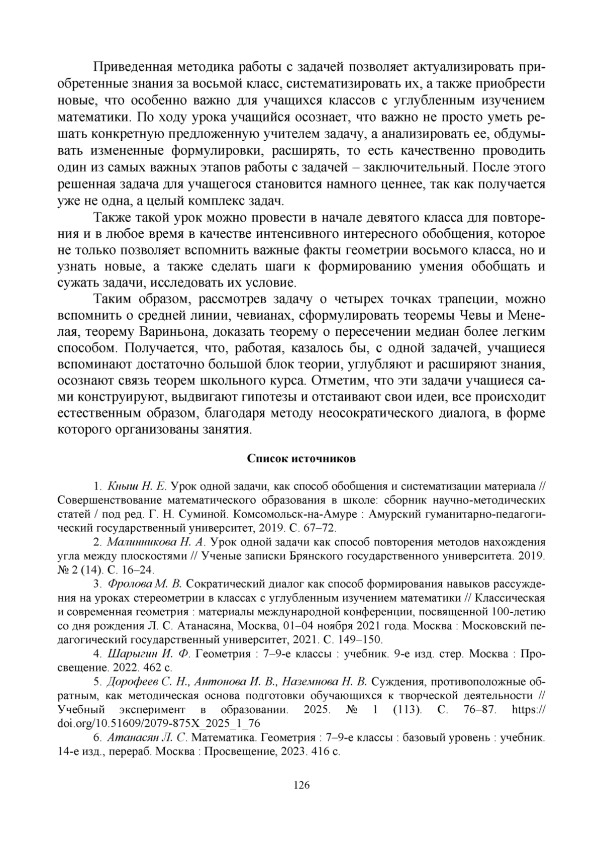 6. Атанасян Л. С. Математика. Геометрия: 7-9-е классы: базовый уровень: учебник. 14-е изд., перераб. Москва: Просвещение, 2023. 416 с.