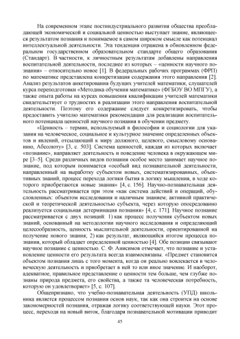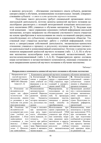 Исследования показывают, что реализация относительно нового направления воспитательной деятельности - ценности научного познания вызывает значительные трудности на теоретическом и практическом уровнях. Цель работы - детализация базового содержания этого направления, представленного в Стандарте, в контексте обучения математике и установление способов его включения в образовательный процесс. Указанные направления рассмотрены с позиций концепции интеллектуального воспитания учащихся в обучении математике. Это определяет новизну исследования - выявление компонентов ценностей научного познания в обучении математике: когнитивного, метакогнитивного, личностно-коммуникативного. Таким образом, цель работы достигнута.