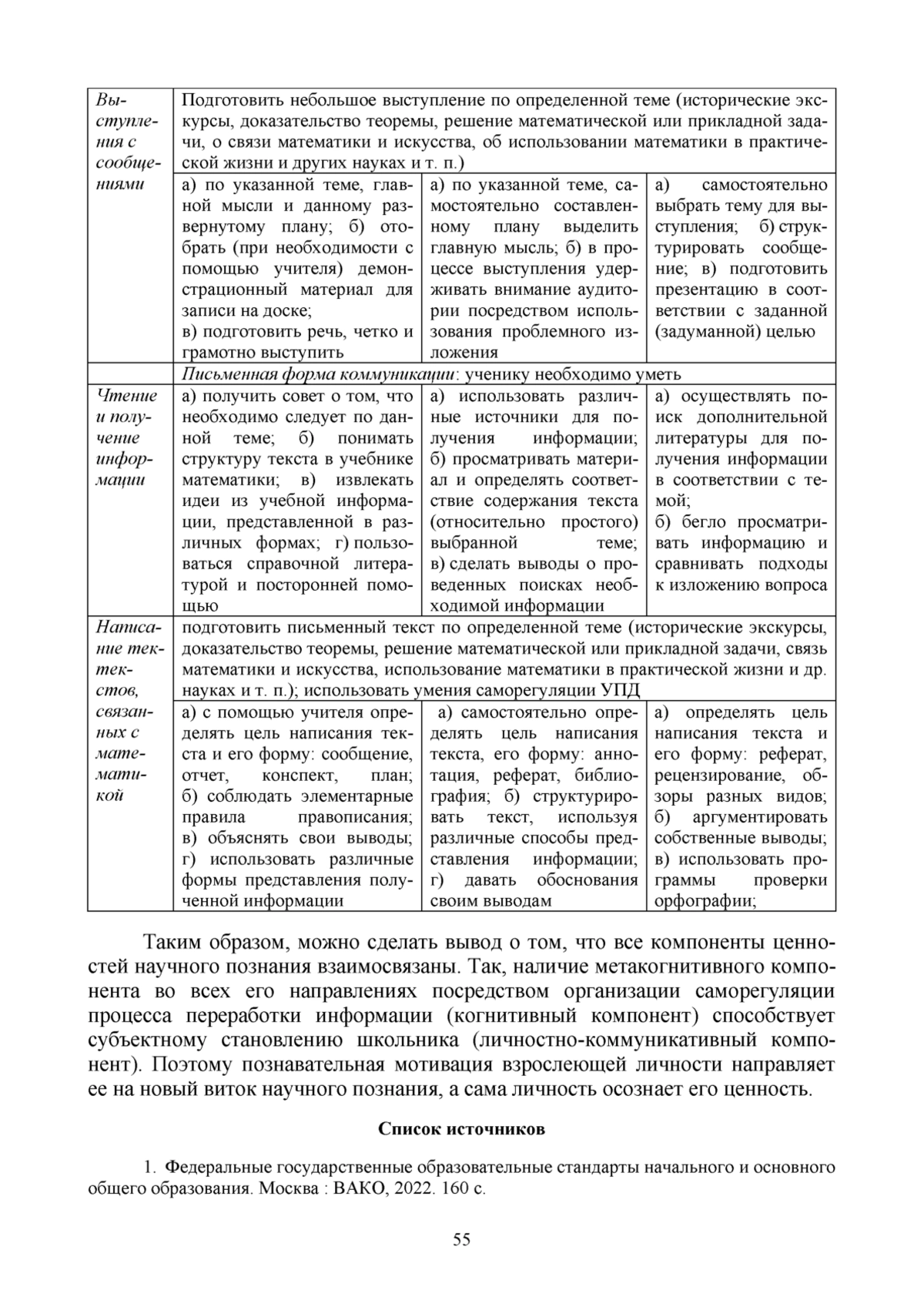 1. Федеральные государственные образовательные стандарты начального и основного общего образования. Москва: ВАКО, 2022. 160 с.