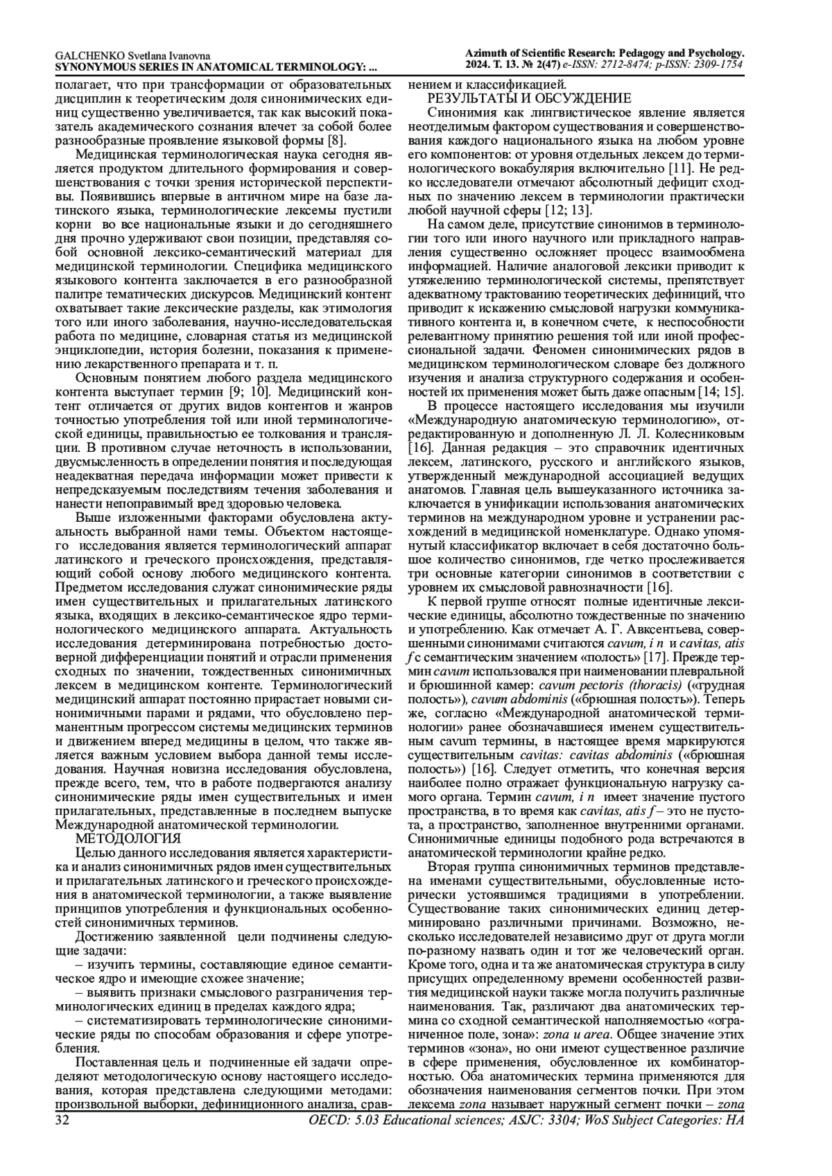 13. Costin, V. The lexical paradigm and synonymous series in medical terminology / V. Costin // Studia Universitatis Moldaviae. Seria Științe Umanistice. - 2023. - No. 4(174). - P. 105-109. EDN: AVZDKX