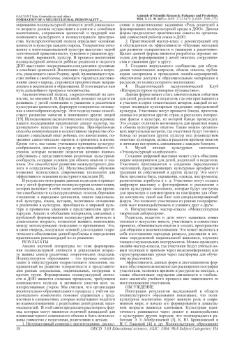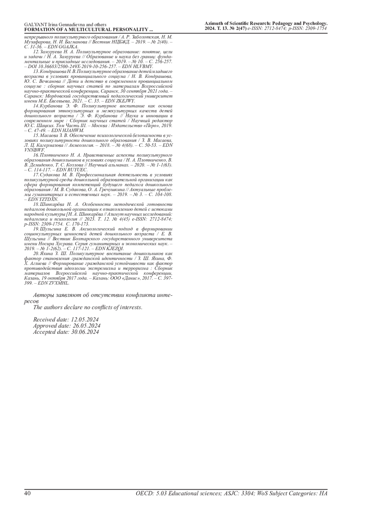5. Газизова Ф. С. Поликультурное образование дошкольников в условиях ДОО / Ф. С. Газизова, А. С. Зиганшина // Аллея науки. - 2020. - Т. 2, № 1(40). - С. 696-700. EDN: WBVNEL