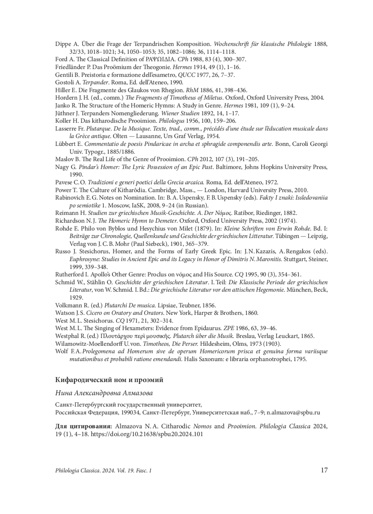 4. Almazova N. Alexander Polyhistor and Glaucus of Rhegium as Sources of Pseudo-Plutarch’s Treatise De musica. III-IV. Hyperboreus 2022, 28 (1), 53-70. EDN: EWLZYZ