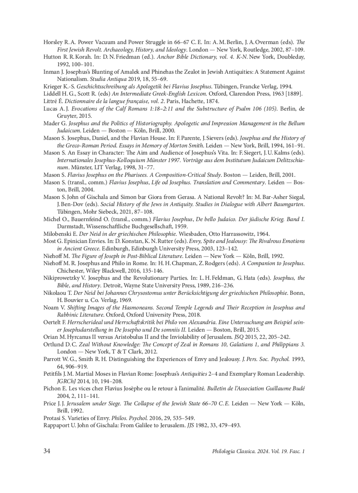 38. van Henten J. W., Huitink L. Josephus. In: K. De Temmerman, E. van Emde Boas (eds). Characterization in Ancient Greek Literature. Studies in Ancient Greek Narrative, vol. 4. Leiden - Boston, Brill, 2018, 251-270.