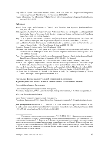 9. Filimonov E. G., Fedotov M. L. Verb Forms with Aspectual Semantics in Ancient Greek and Modern Russian in the Text of the Gospel of Mark. Indo-European Linguistics and Classical Philology 2022, 26-2, 1166-1180 (in Russian). EDN: TMCWZX