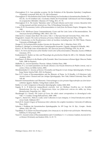 5. Chernoglazov D. A. The treatise “Epistolary styles” of Pseudo-Libanios and its later versions: Byzantine letter writing manuals and their practical use. Diss. St Petersburg University, 2021. EDN: VWONHN