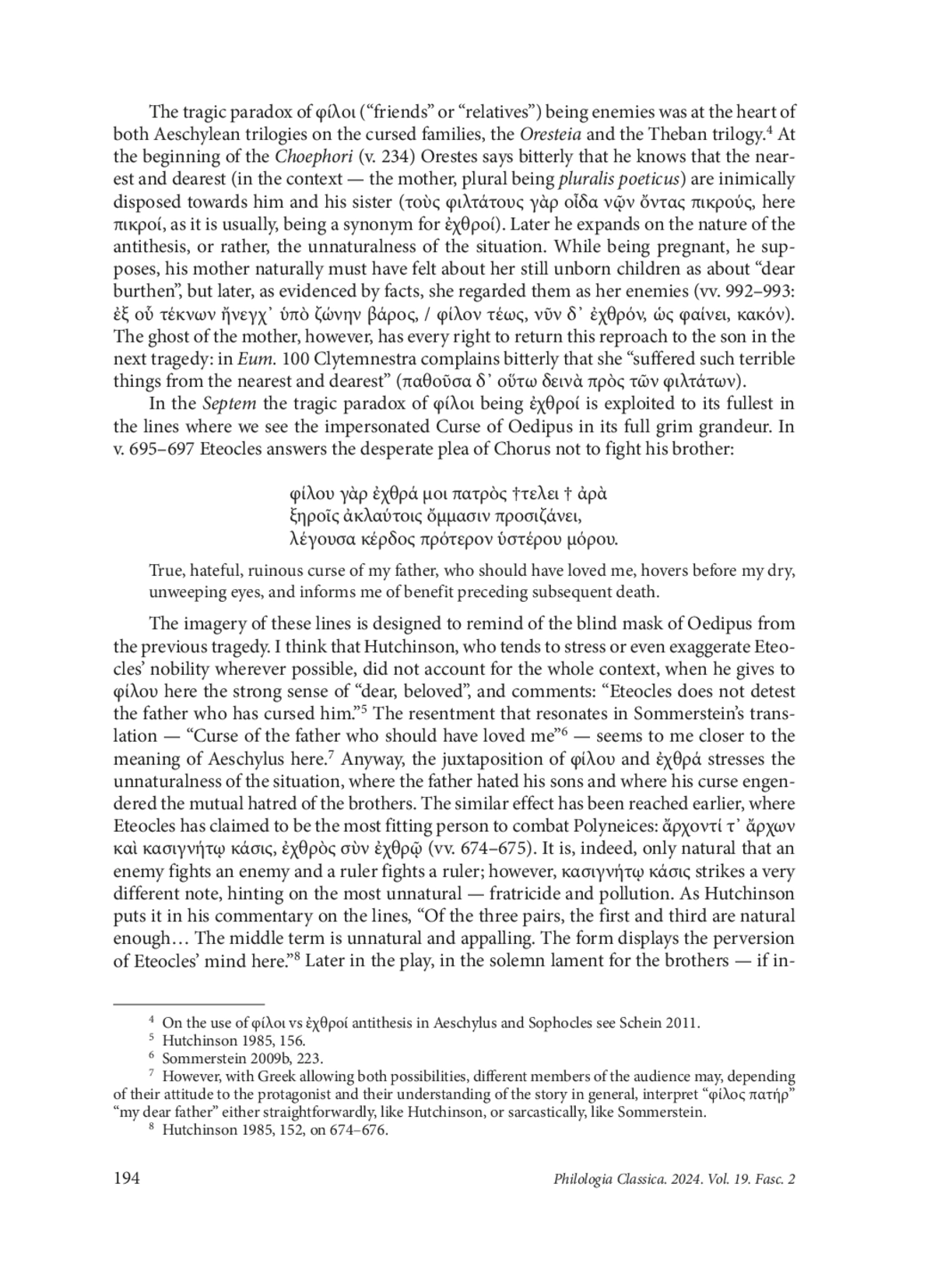 57. Schein S. The Language of Hatred in Aeschylus and Sophocles. Metis 9, 2011, 69-80.