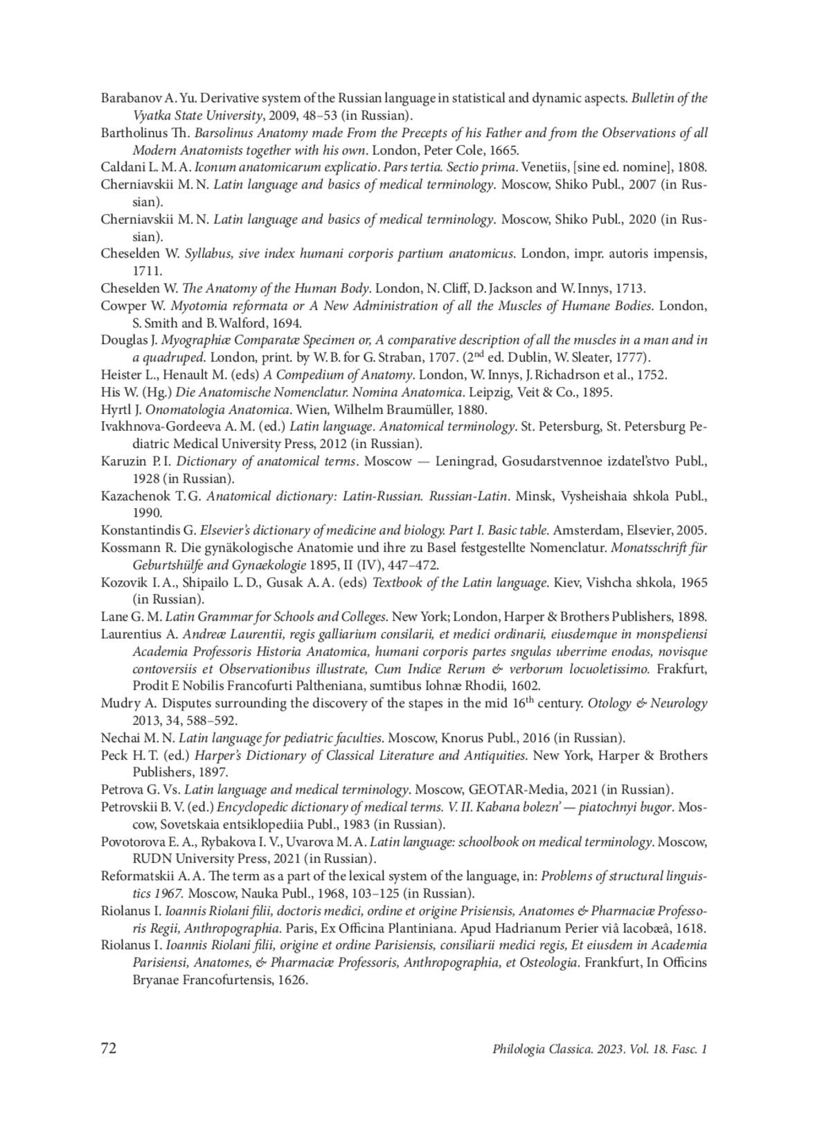 17. Ivakhnova-Gordeeva A. M. (ed.) Latin language. Anatomical terminology. St. Petersburg, St. Petersburg Pediatric Medical University Press, 2012 (in Russian).