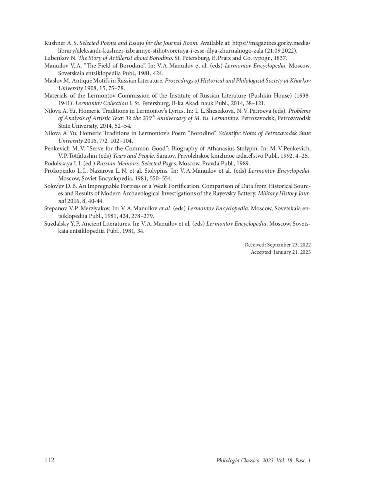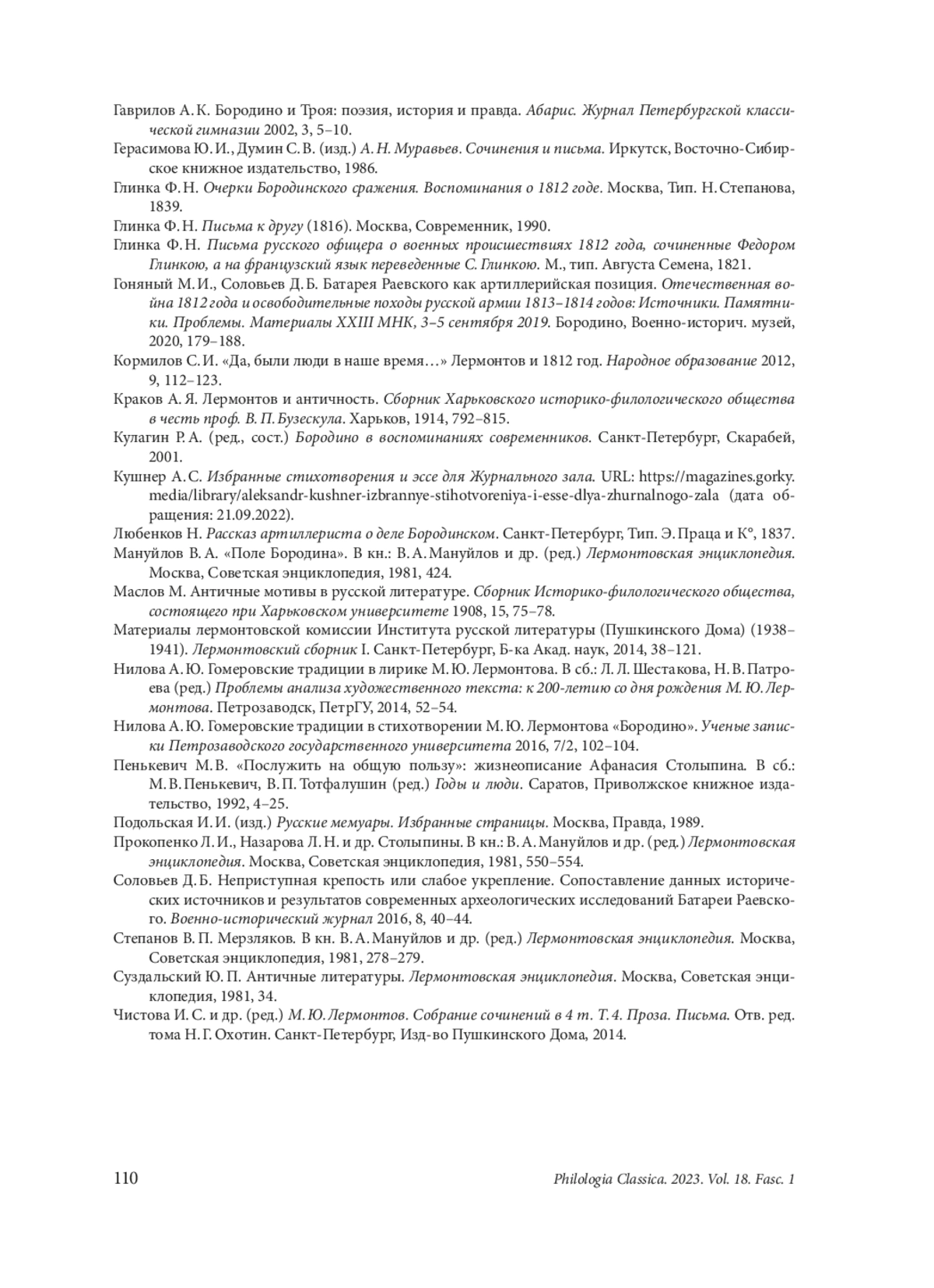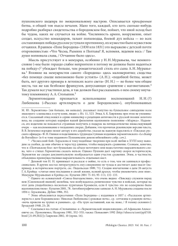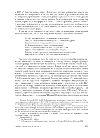 17. Нилова А. Ю. Гомеровские традиции в стихотворении М. Ю. Лермонтова “Бородино”. Ученые записки Петрозаводского государственного университета 2016, 7/2, 102-104.