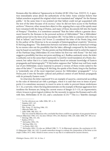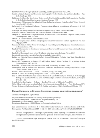 5. Bikerman E. La lettre de Mithridate dans les ‘Histoires’ de Salluste. Revue des études latines 1946, 24, 131-151.
