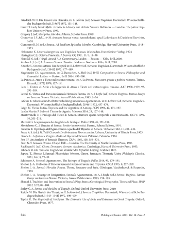 36. Lefèvre E. Schicksal und Selbstverschuldung in Senecas Agamemnon, in: E. Lefèvre (ed.) Senecas Tragödien. Darmstadt, Wissenschaftliche Buchgesellschaft, [1966] 1972, 457-476.
