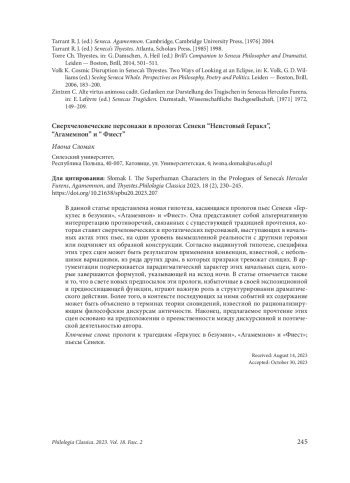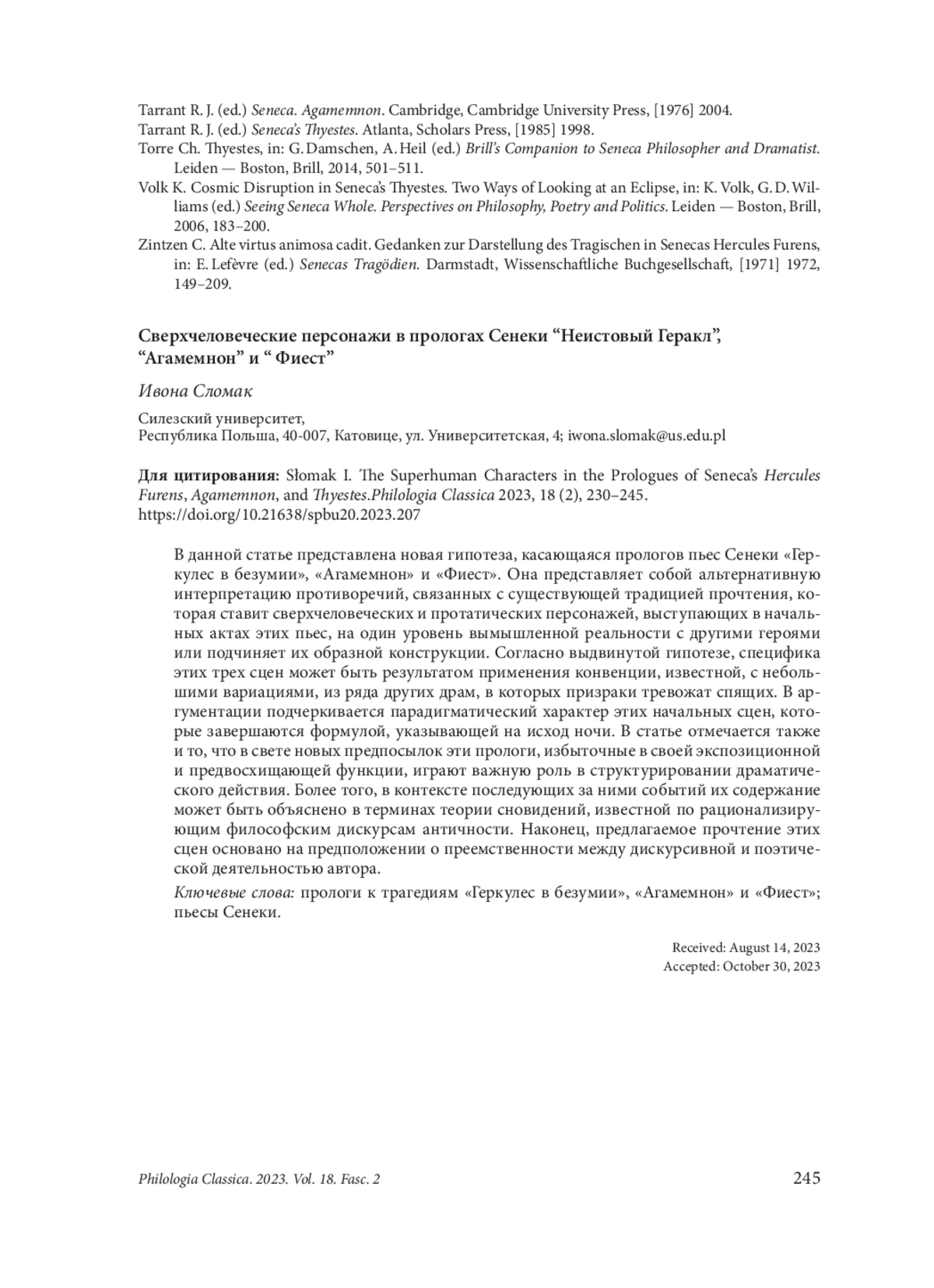 49. Sapota T., Słomak I. Seneca’s Phoenician Women. Genre, Structure, Thematic Unity. Philologia Classica. 2021, 16 (1), 77-89. EDN: FMYHRZ