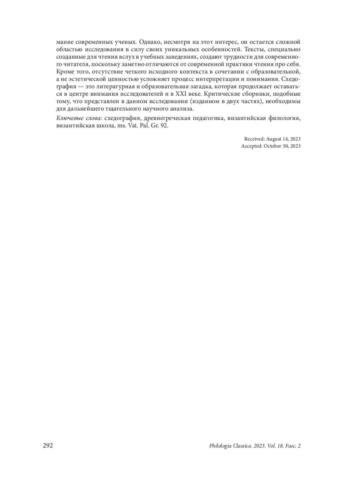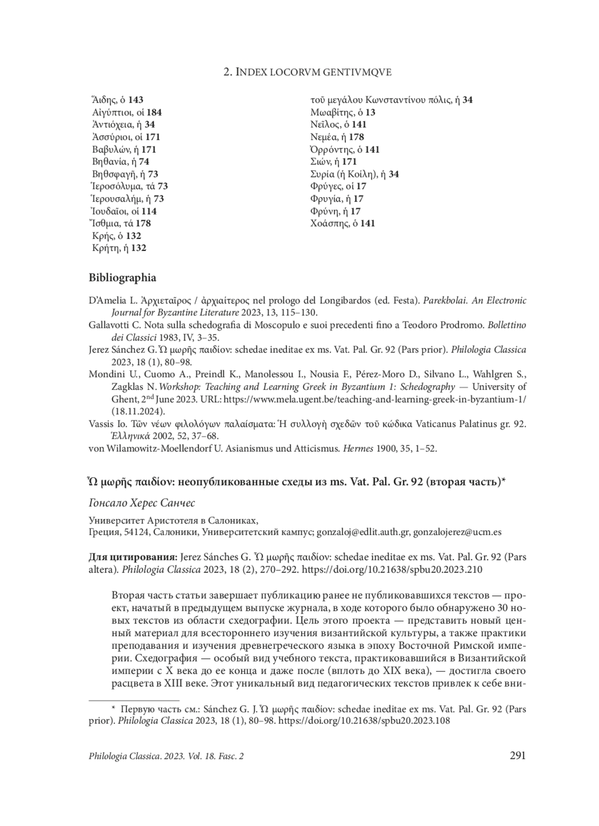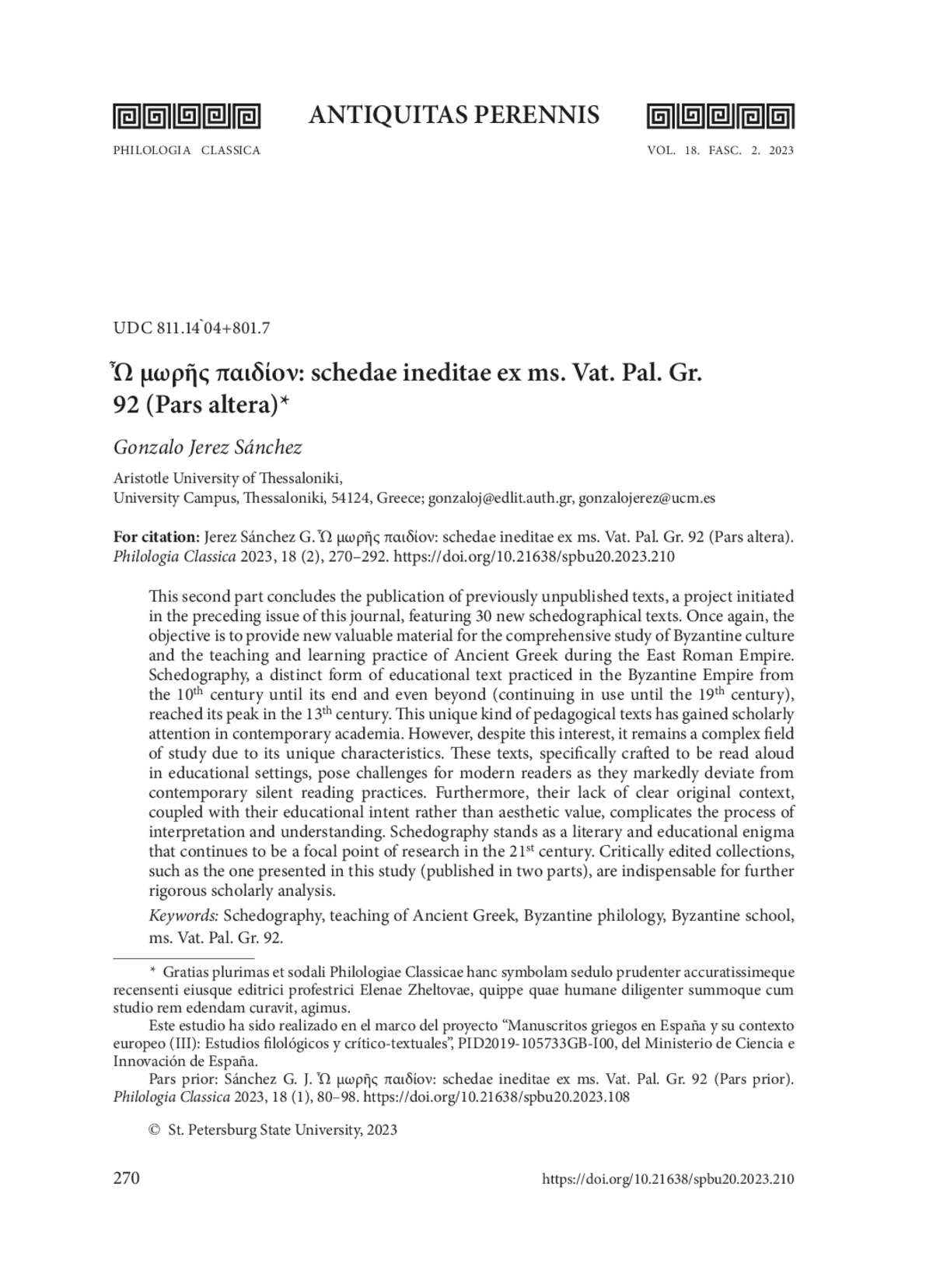 3. Jerez Sánchez G. Ὦ μωρῆς παιδίον: schedae ineditae ex ms. Vat. Pal. Gr. 92 (Pars prior). Philologia Classica 2023, 18 (1), 80-98. EDN: HFHIUK