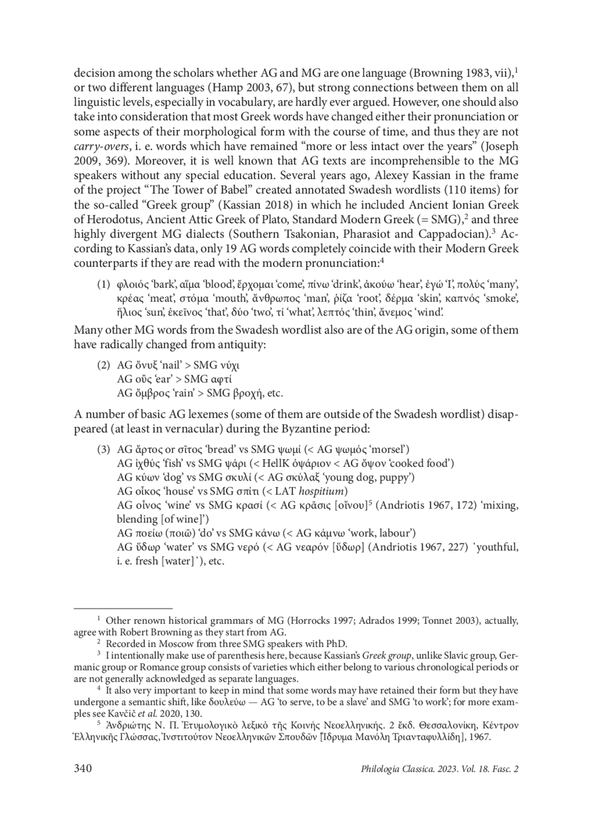 24. Kassian A. Annotated Swadesh Wordlists for the Greek Group (Indo-European Family). 2018. URL: http://starling.rinet.ru/new100/grk.pdf (accessed: 26.03.2018).
