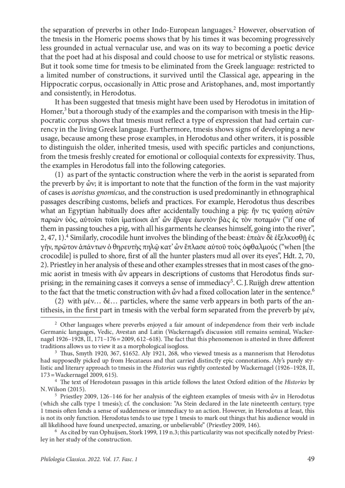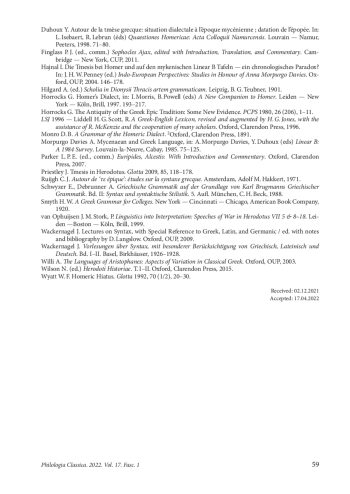 18. Priestley J. Tmesis in Herodotus. Glotta 2009, 85, 118-178.
