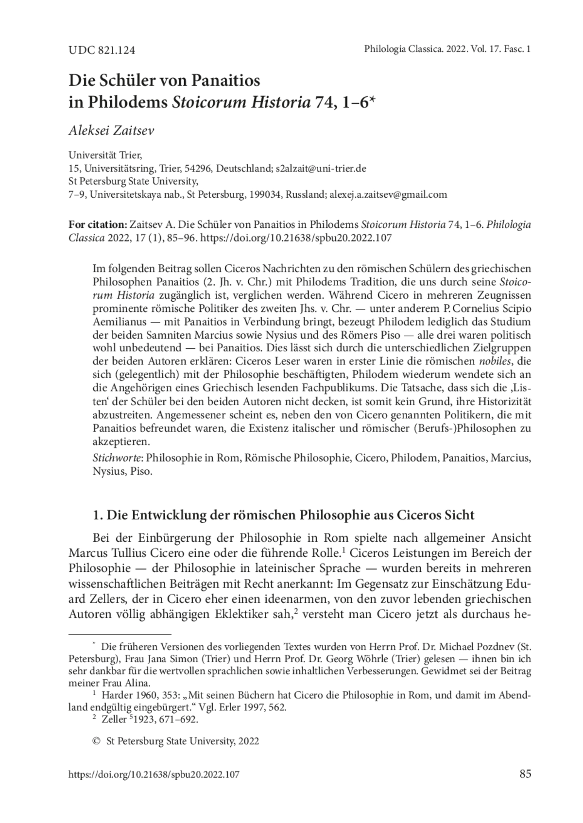 58. Zaitsev A. Philosophischer Kulturaustausch: Die Kontakte der Römer mit den griechischen Philosophen vom dritten bis zum ersten Jh. v. Chr. Diss. phil. Trier, Universität Trier, 2022.