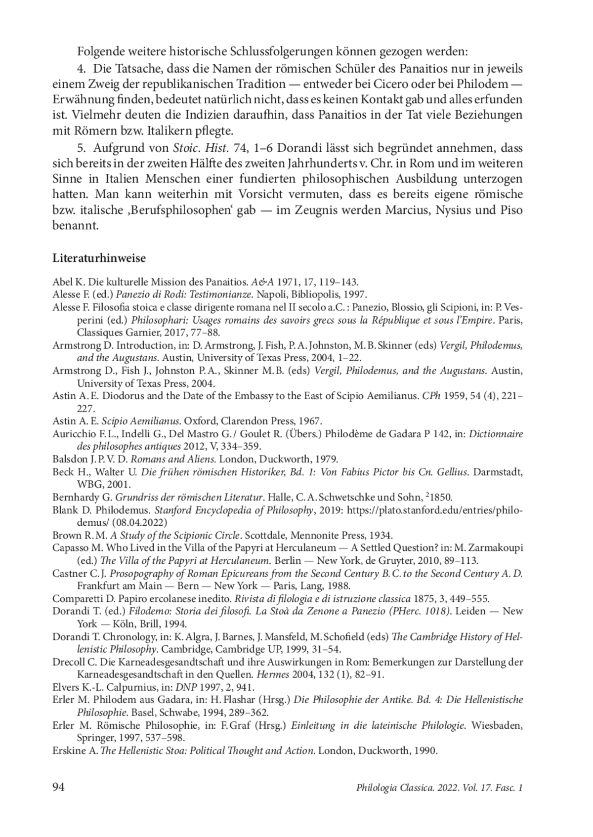 49. Steinmetz P. Panaitios aus Rhodos und seine Schüler, in: H. Flashar (Hrsg.) Die Philosophie der Antike. Bd. 4: Die Hellenistische Philosophie. Basel, Schwabe, 1994, 646-669.
