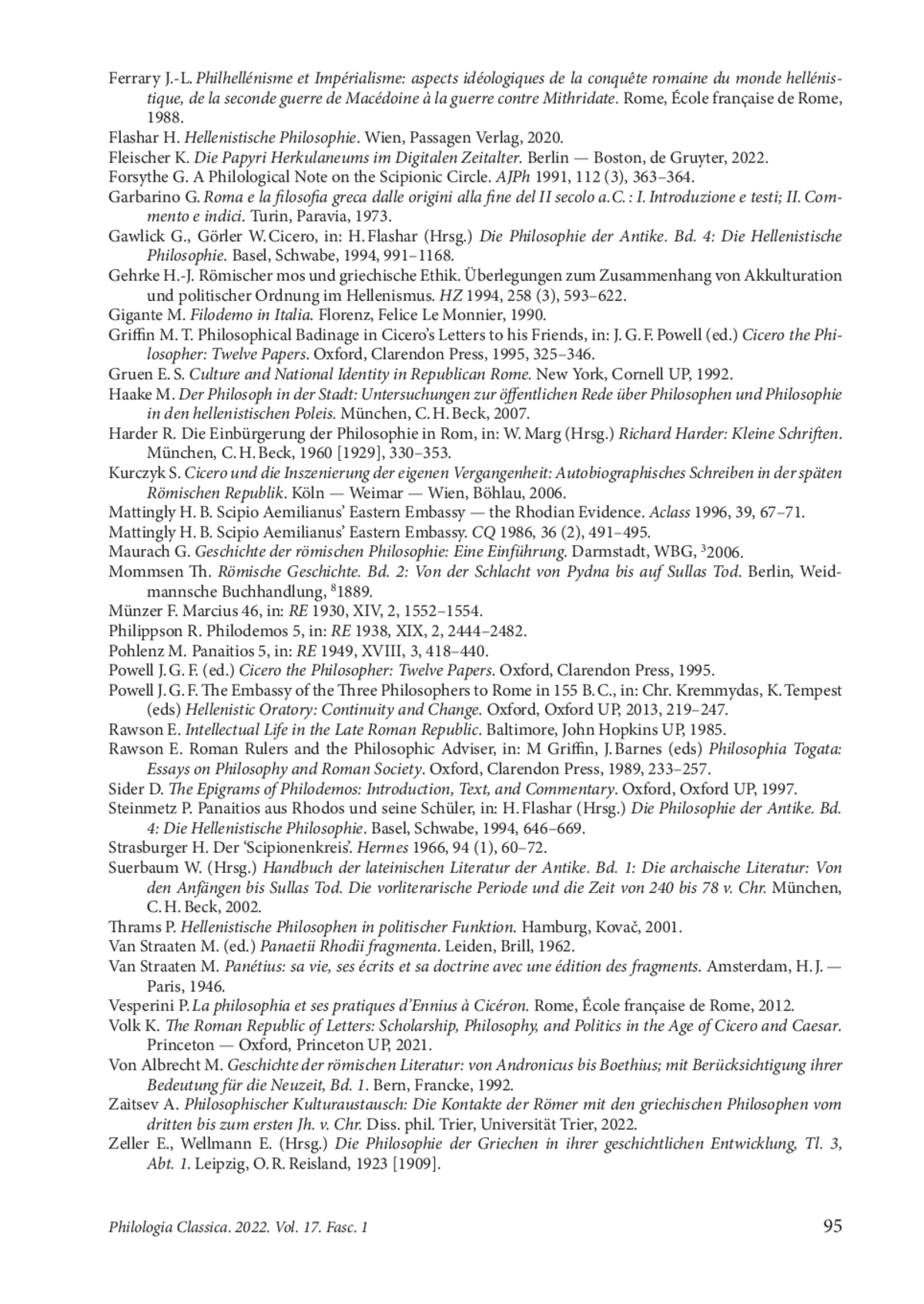 35. Harder R. Die Einbürgerung der Philosophie in Rom, in: W. Marg (Hrsg.) Richard Harder: Kleine Schriften. München, C. H. Beck, 1960 [1929], 330-353.