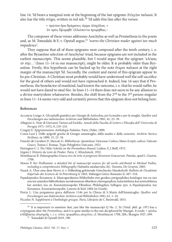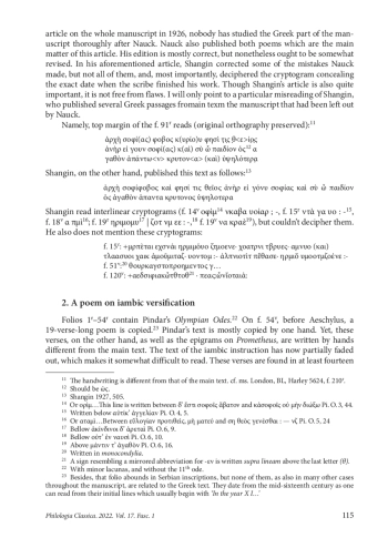 16. Shangin M. A. Manuscript of the Academy of Sciences containing Pindar and Aeschylus. Izvestiia Akademii Nauk SSSR, VI seriia, 1927, tom 21, vypusk 3, 499-510 (in Russian).