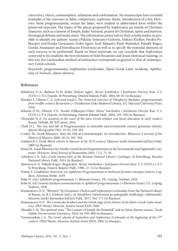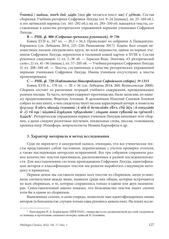 9. Рамазанова Д. Н. “Риторики” Герасима Влаха и Софрония Лихуда в составе РНБ. Греч. 736: из наблюдений над кодексом, в кн.: Б. Л. Фонкич (ред.) Монфокон: Исследования по палеографии, кодикологии и дипломатике. М., Языки славянской культуры, 2017, 162-171. EDN: YWPSGN