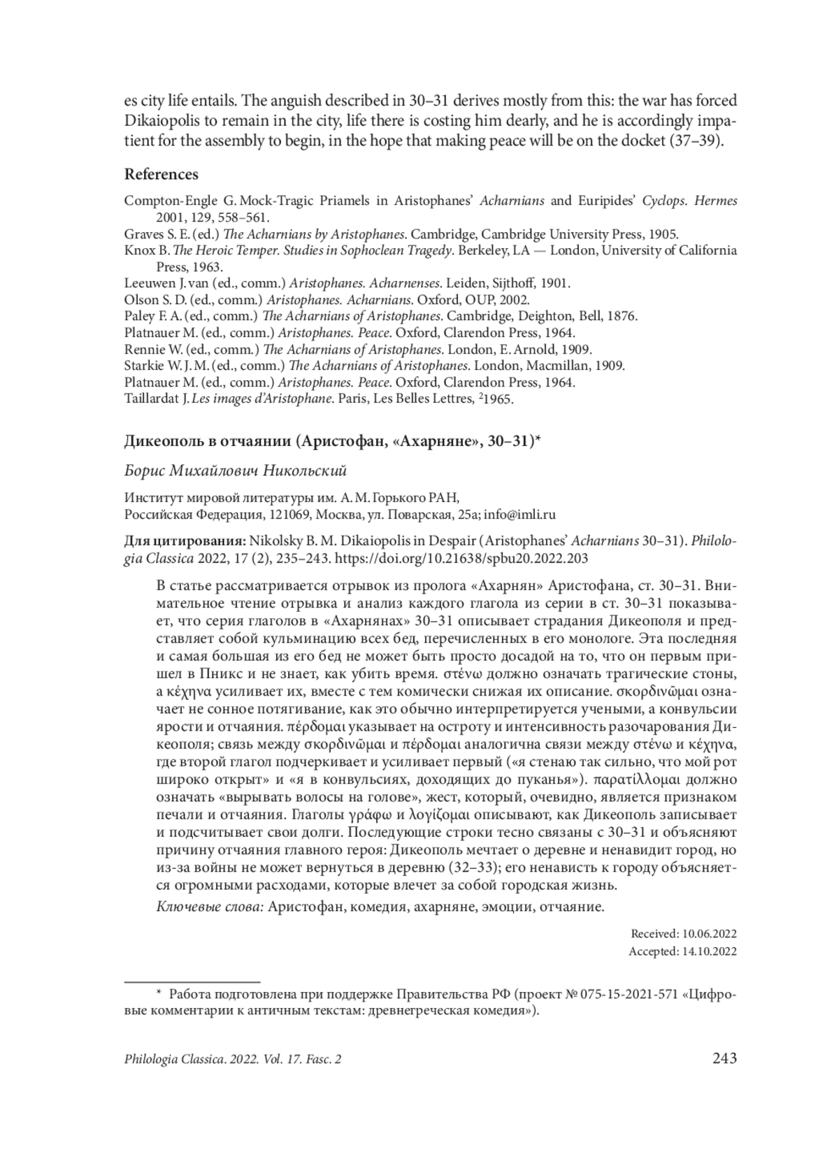 10. Platnauer M. (ed., comm.) Aristophanes. Peace. Oxford, Clarendon Press, 1964.