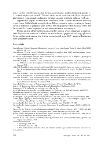 16. Παντελίδης Στ. Θεοκρίτου ἐαρινὴ ὁδοιπορία βεβαιουμένη ἐξ ἀνεκδότων ἐπιγραφῶν. BCH 14, 1890, 292-300.