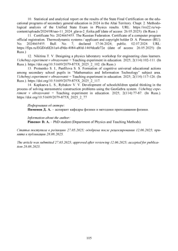 12. Никитина Т. В. Проектирование лабораторного практикума по физике для учащихся инженерных классов // Учебный эксперимент в образовании. 2025. № 2 (114). С. 102-111. DOI: 10.51609/2079-875X_2025_2_102 EDN: CTRVVT