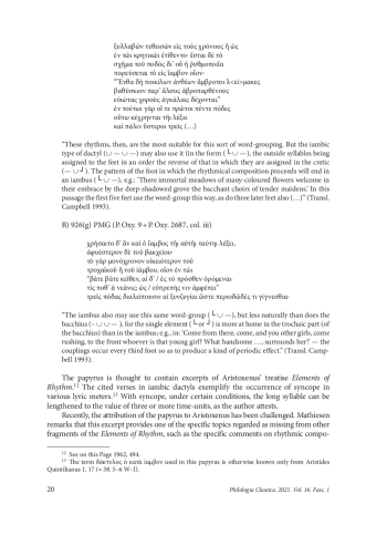 12. Calvié L. Le Fragment Rythmique du P. Oxy. 9 + 2687 Attribué à Aristoxène de Tarente. Revue de Philologie 2014, 88 (1), 7-54.