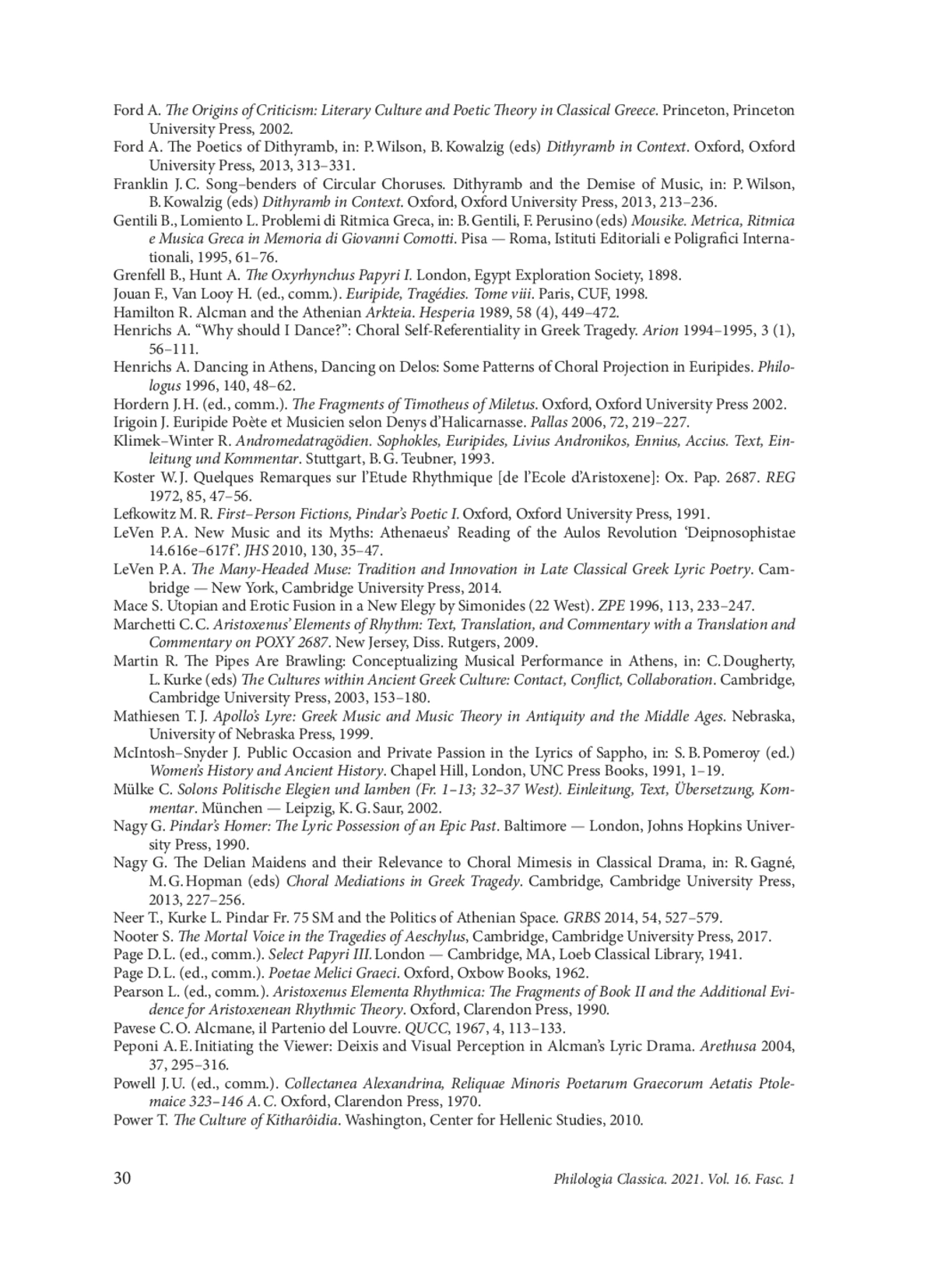29. Ford A. The Poetics of Dithyramb, in: P. Wilson, B. Kowalzig (eds) Dithyramb in Context. Oxford, Oxford University Press, 2013, 313-331.