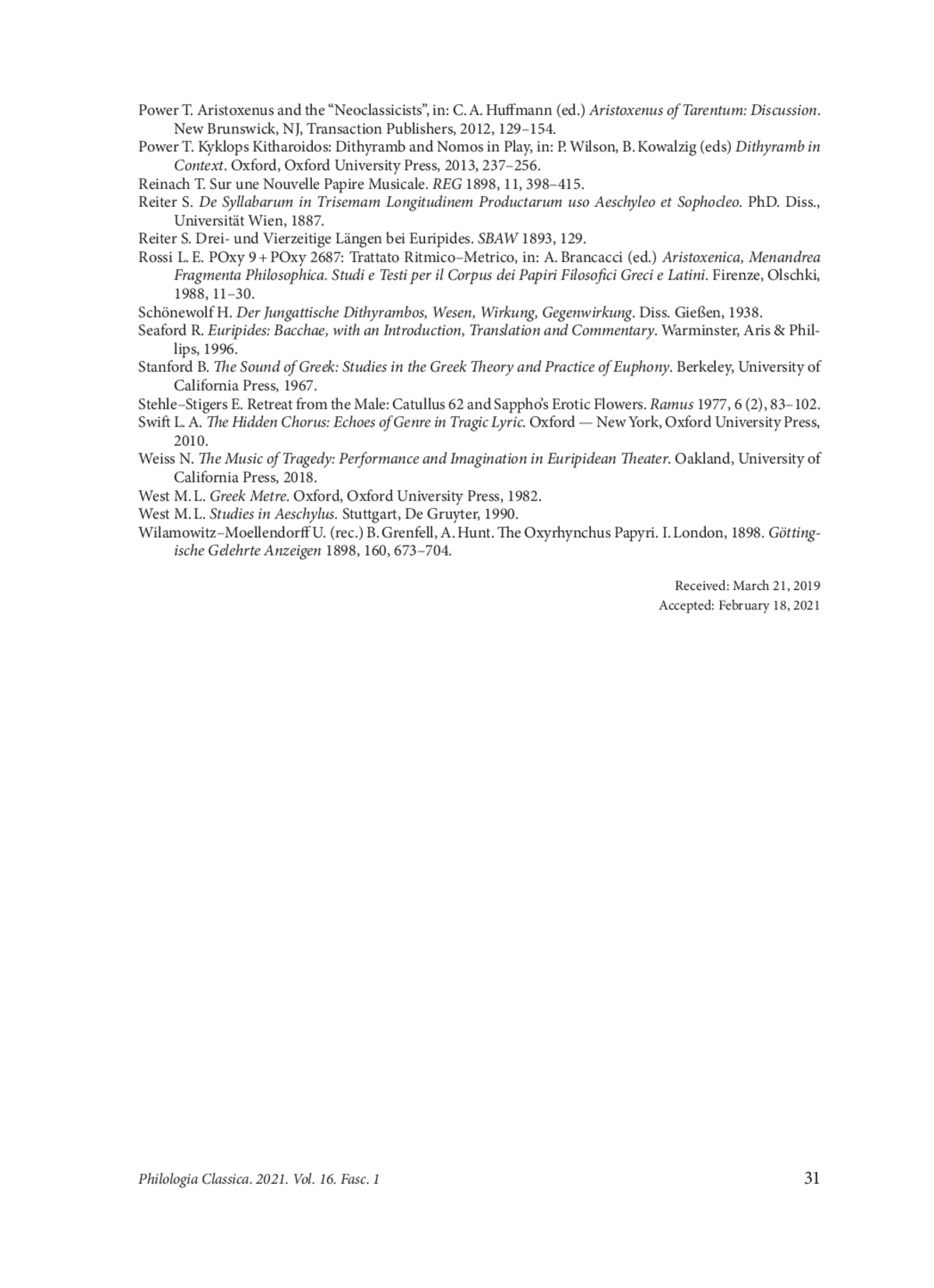 61. Power T. Aristoxenus and the ‘‘Neoclassicists’’, in: C. A. Huffmann (ed.) Aristoxenus of Tarentum: Discussion. New Brunswick, NJ, Transaction Publishers, 2012, 129-154.