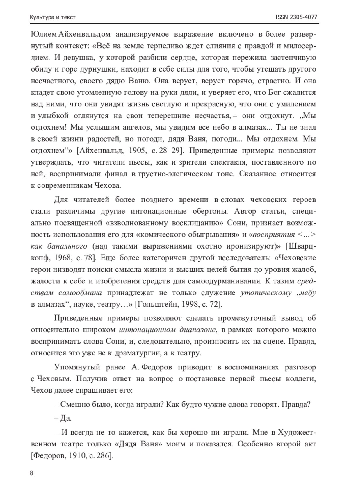 7. Гольштейн, В. Жертва и долг в “Дяде Ване” / В. Гольштейн // Русская литература. - 1998. - № 2. - С. 65-74.