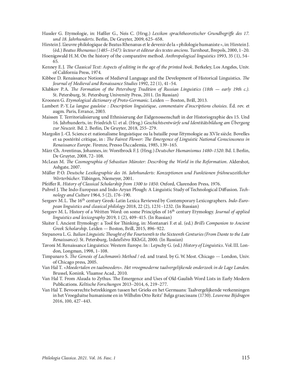 54. Sergeev M. L. The 16th century Greek-Latin Lexica Reviewed by Contemporary Lexicographers. Indo-European linguistics and classical philology 2018, 22 (2), 1231-1232. (In Russian).