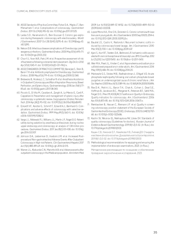 7. Kothari S.T., Huang R.J., Shaukat A., Agrawal D., Buxbaum J.L., Abbas Fehmi S.M., Fishman D.S., Gurudu S.R., Khashab M.A., Jamil L.H., Jue T.L., Law J.K., Lee J.K., Naveed M., Qumseya B.J., Sawhney M.S., Thosani N., Yang J., DeWitt J.M., Wani S; ASGE Standards of Practice Committee Chair. ASGE review of adverse events in colonoscopy. Gastrointest Endosc. 2019 Dec;90(6):863-876.e33. DOI: 10.1016/j.gie.2019.07.033