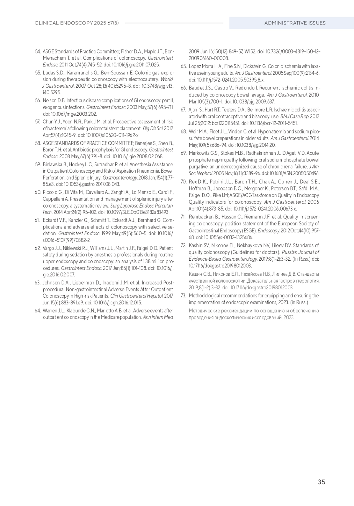 63. Johnson D.A., Lieberman D., Inadomi J.M. et al. Increased Post-procedural Non-gastrointestinal Adverse Events After Outpatient Colonoscopy in High-risk Patients. Clin Gastroenterol Hepatol. 2017 Jun;15(6):883-891.e9. DOI: 10.1016/j.cgh.2016.12.015