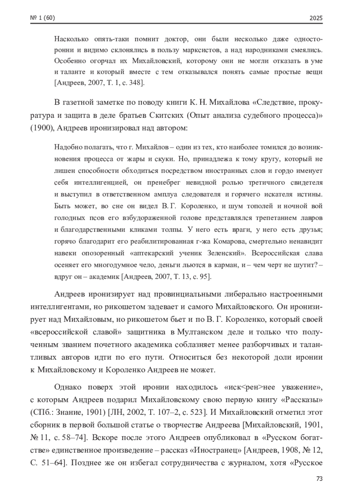 36. Михайловский, Ник. Литература и жизнь. Об одном неосновательном мнении. - “Рассказы” Леонида Андреева. - Страх смерти и страх жизни. - Несколько слов “Финляндской газете” / Ник. Михайловский // Русское богатство. - 1901. - № 11. - С. 58-74.